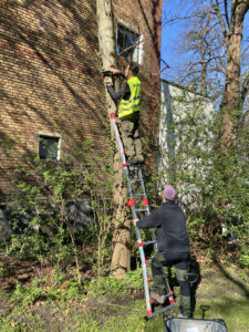 Um 10 Uhr haben wir gestartet und zunächst zusammen mit dem NABU mehrere Nistkästen für Meisen, Rotkehlchen und Sperlinge im Park aufgehängt. Ein schöner erster Schritt für mehr Natur im Park!