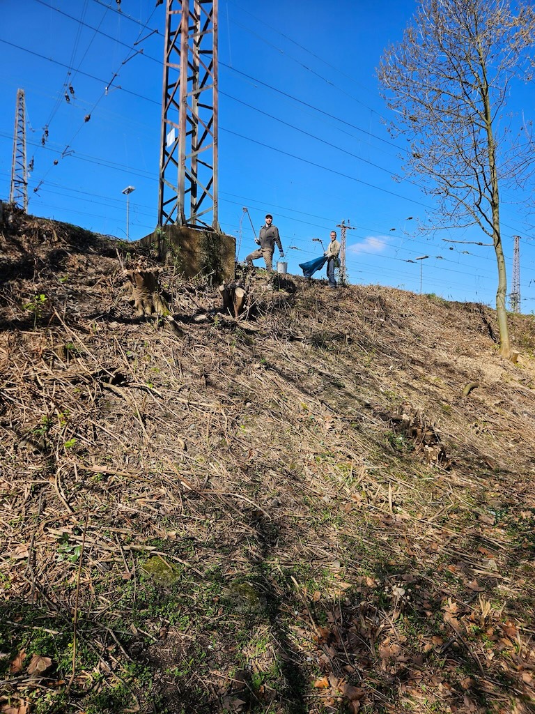 Ab 11 Uhr hieß es dann wieder: Handschuhe an und los geht’s! Gemeinsam mit vielen engagierten Helferinnen und Helfern haben wir den Goerdeler Park aufgeräumt und von Müll befreit. Auf den ersten Blick dachten wir noch, dass der Park aktuell gar nicht so verschmutzt sei, doch bei genauerem Hinschauen kam einiges zusammen. Am Ende waren es neun große Mülltüten plus Sperrmüll: ein Staubsauger, ein kaputtes Fahrrad, Kleidersäcke, ein Planschbecken und sogar mehrere Isomatten, die sich in den Gebüschen versteckt hatten. Besonders rund um den Bahndamm und am Eingang zum U-Bahnhof lag viel Müll, darunter auch zahlreiche Glasscherben. Umso schöner zu sehen, wie sich das Bild des Parks im Laufe der Aktion sichtbar verbessert hat.